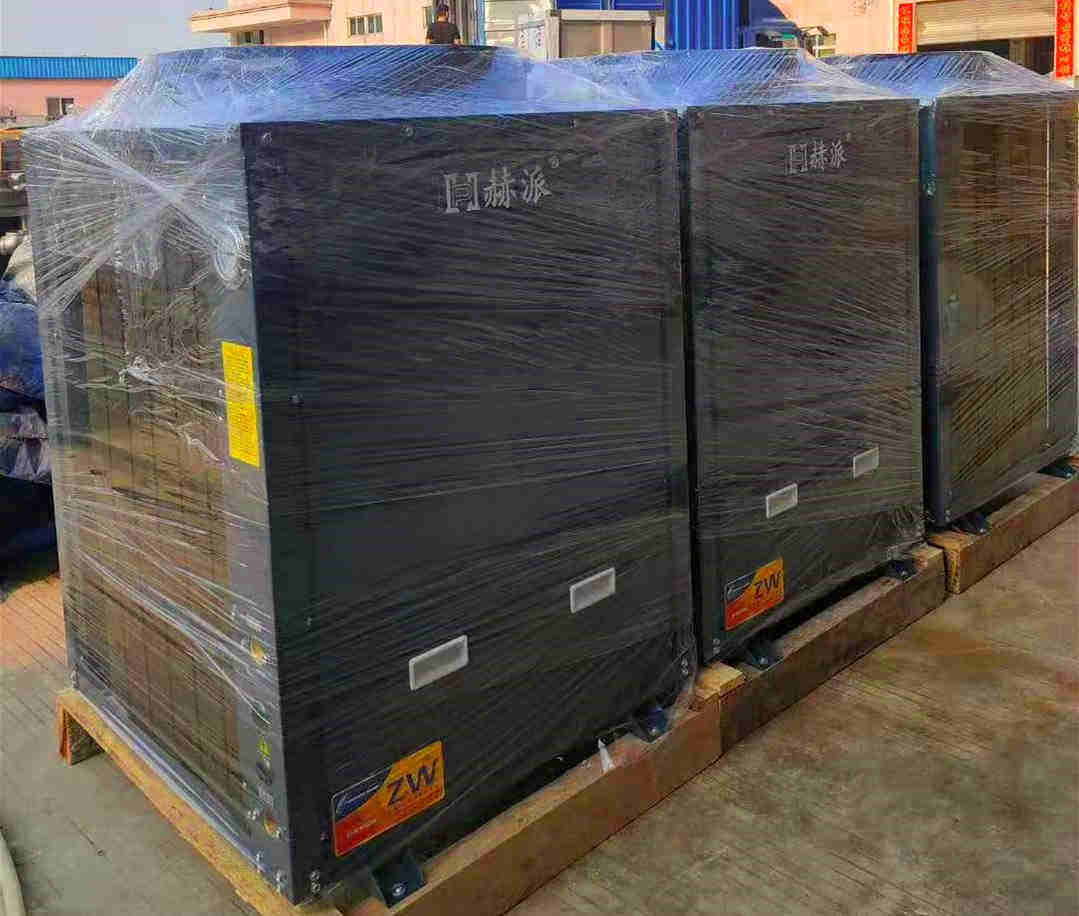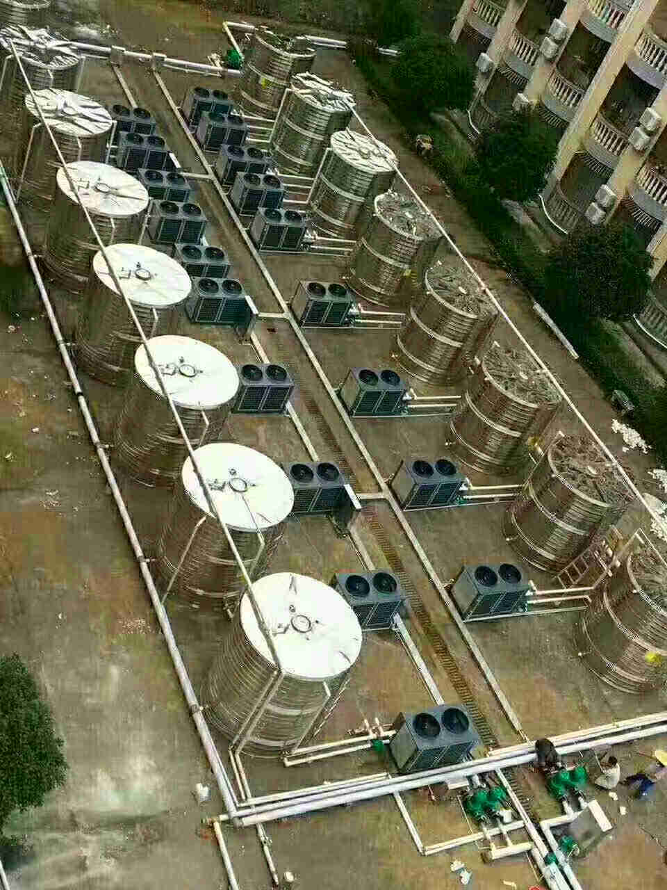 在標況下系統(tǒng)設計為自來水流經(jīng)機組一次升溫5℃。將保溫水箱中的水循環(huán)加熱至設定溫度。系統(tǒng)設計簡單,在天氣比較寒冷區(qū)域,機組能穩(wěn)定運行。