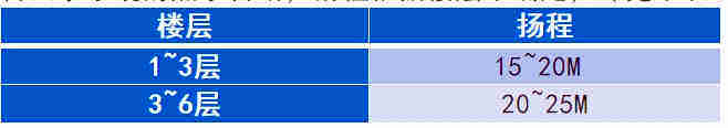 含回水系統(tǒng)的熱水管路,揚程根據(jù)樓層來確定,詳見下表