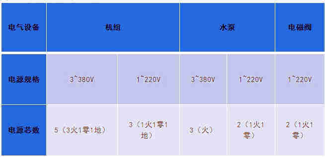 根據(jù)線徑選型,計算出火線線徑,然后根據(jù)設備電源芯數(shù)來選擇電纜規(guī)格。單相電源的零火線一般為同一規(guī)格,三相電源的零線比火線小1-2個規(guī)格。詳見電線電纜規(guī)格表。