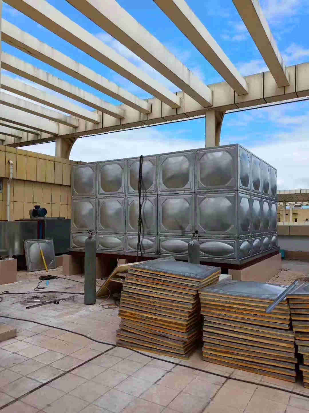 不銹鋼聚氨脂水箱分為兩層,內(nèi)層采用食品級(jí)304不銹鋼材料,與不銹鋼水箱同樣制作方法。內(nèi)部也需要拉筋加固,結(jié)構(gòu)都是一樣;不銹鋼聚氨脂水箱的中層部分為聚氨脂發(fā)泡層,標(biāo)準(zhǔn)配置均為50mm厚度的聚氨脂發(fā)泡板。在工廠通過模壓成型,與不銹鋼水箱模塊同樣,使其能與不銹鋼水箱側(cè)面板材完全吻合,達(dá)到無空隙發(fā)揮最佳保溫性能;不銹鋼聚氨脂水箱外層為貼附層,為保護(hù)聚氨脂發(fā)泡層的作用。在外層也同樣采用食品級(jí)SUS304不銹鋼,因?yàn)榇祟愪摲N的不生銹,韌性好。當(dāng)然為了節(jié)省不銹鋼聚氨脂水箱的成本,也可以采用彩鋼板或是201/202等相對(duì)價(jià)格較為使用的材質(zhì)作為不銹鋼聚氨脂水箱的外層貼附水箱