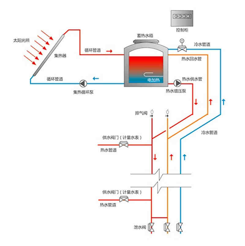 常用于大型太陽能中央熱水工程,新建建筑強制安裝太陽能熱水系統(tǒng)的工程配套。