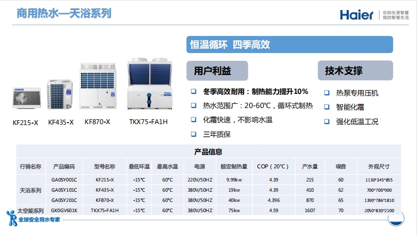 目前,海爾空氣能在全屋領域?qū)崿F(xiàn)全面引領,主打智慧健康用水,場景需求迭代,根據(jù)細分場景精準定位推出相應的解決方案及產(chǎn)品,如驕陽系列變頻噴氣增焓采暖機、卡薩帝80°C高水溫系列、cop6.0高能效系列、海爾高效變頻王系列等,實現(xiàn)全屋用水不等待、多點用水即開即熱、超大水量全家暢享、全屋采暖一臺解決等差異化場景,各類用戶都可享受到綠色節(jié)能的熱水體驗。