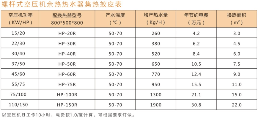 螺桿式空壓機(jī)余熱熱水器集熱效應(yīng)表