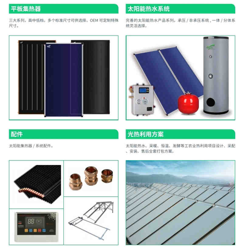 集熱器通常分為兩類:平板型太陽能集熱器及真空管太陽能集熱器;真空管型太陽能集熱器則包括全玻璃真空管、熱管式真空管和U型管式真空管;其使用條件及特點(diǎn)各有裨益。